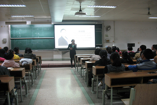 姚锦荣老师一登台就用她自信的微笑、热情的话语吸引了在场每一位同学的目光。她首先和台下的同学们进行互动,让同学们认识到自信的表达、得体的交际礼仪对于大学生的重要性。接着,她向同学们介绍了三条大学生铁律:第一,所有人毕业后都需要有一份职业;第二,所有的职业都需要能力;第三,所有的能力都需要有一段时间的训练。并详细阐述了每一条铁律对于大学生的意义,以及如何一步一步提高自己的软实力。最后,姚锦荣老师和大家分享了几个简单实用的演讲手势,用生动的例子教同学们运用一些演讲技巧来提高演讲水平,运用简单的肢体语言来更好地与人交流。