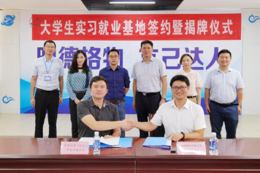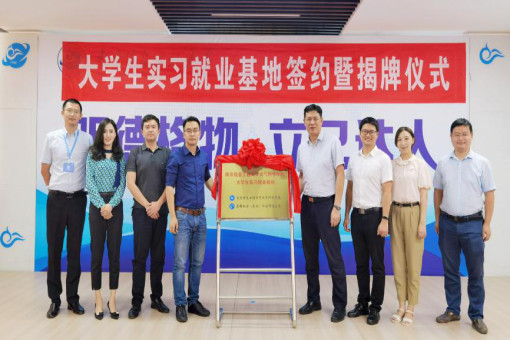 最后,公司代表吴战昊和学院代表蔡惠华共同完成了大学生实习就业基地签约仪式,并由副总裁林忠和院长陈海山进行了揭牌仪式。