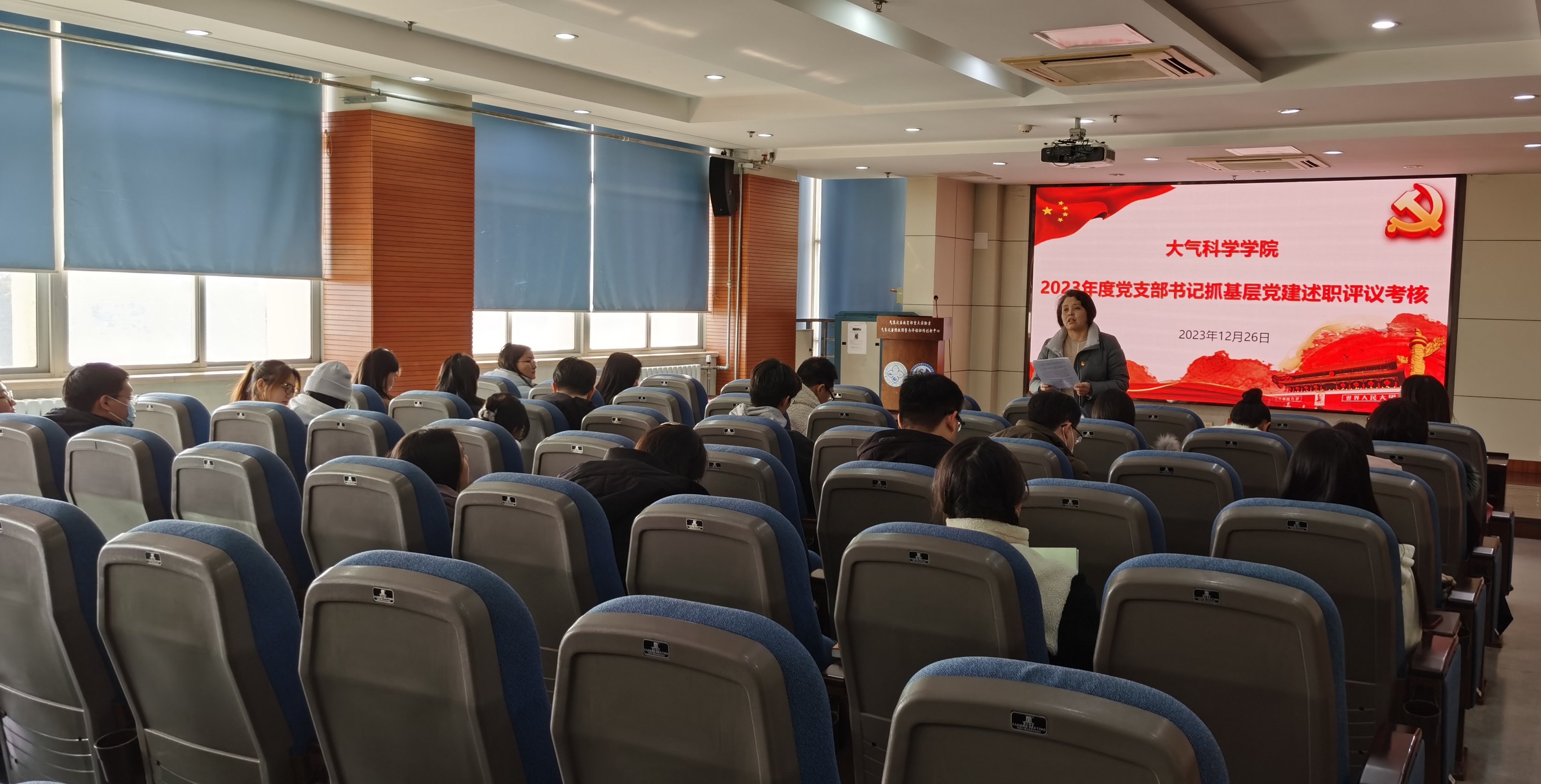 为深入贯彻落实党的二十大精神,推动全面从严治党向基层延伸,进一步提升基层党建工作质量,大气科学学院于2023年12月26日下午召开党支部书记抓基层党建述职评议考核会。党委书记周淑琴、党委副书记张皓及学院25个党支部书记出席会议。会议由党委书记周淑琴主持。