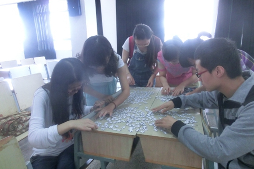 比赛分为两个部分,即预赛和决赛。预赛开始前,每队派出一名选手抽取比赛拼图,然后在指定时间内与队员合作拼图,比赛结束后,按照拼图的完成率选出晋级队伍进行决赛。而决赛依旧是在指定时间内完成拼图,待比赛结束,由评委计算拼图的完成率,与预赛不同的是,决赛的难度提高了一个等级。不少同学表示,本次大赛拼图色彩差别极小,难度颇高,队员们拼得一头雾水,但他们也觉得重在参与,结果怎样不重要,很享受这次比赛的过程。