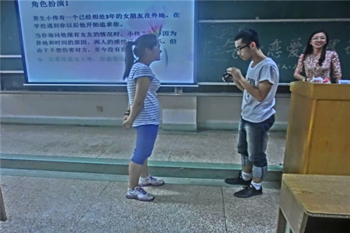 讲座伊始,周老师用三毛与荷西的爱情故事引出本次讲座的主要内容。紧接着,她为大家详细介绍了著名心理学家罗伯特·斯腾伯格的爱情理论——“爱情三元理论”,以生动活泼的语言结合多个实例让在场的同学们对“什么是真正的爱情”这一问题有了更深刻、更全面的理解。随后,周老师就“如何对待大学爱情”、“在读大学生结婚”、“理性面对恋爱失败”、“如何树立合理的择偶观”等大家关心的问题作了深入浅出的讲解和分析:角色扮演环节中,周老师通过设置典型案例并让同学现场演练,分析和点评了大家在恋爱中的不恰当言行;特点大拍卖环节中,同学们积极互动,在欢快的游戏氛围中也开始反思自己的择偶观。