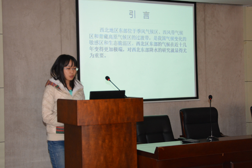 最后,2011级硕士研究生赵文宁作了题为《云南东部春季旱涝特征及水汽资源特征研究》的报告。报告主要讲了云南东部春季旱涝、水汽资源特征;云南东部春季旱涝异常环流背景特征分析;下一步计划深入分析昆明准静止锋对云南东部地区的影响和WRF模式模拟分析地形与环流对昆明准静止锋的不同作用。评委指出特征分析及影响因子分析的很好,并提出后期数值模拟分析准静止锋要考虑全面。