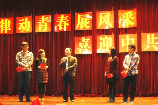 晚会进行到此时,殷跃峰副书记上台发言。他表达了自己对当代党员和团员的希望,他说,“希望党员团员们能继续持久地体现这种先进性,起到模范带头作用,积极的团结广大同学,向各种组织靠拢,一同前进,同时,也要学好专业知识,要勇于创新,为将来的就业打好基础。”