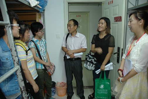现场接待工作刚告一段落,学院党委副书记、副院长殷跃峰,辅导员老师张皓、张潇潇和各班的班主任老师们又马不停蹄地赶往新生宿舍进行逐一走访,及时把握学生情况、了解学生思想动态、传达学院的关怀和问候。走访中,院领导及各位老师嘱咐新生提高安全意识,积极协调同学关系,鼓励大家独立自主,早日适应大学生活。