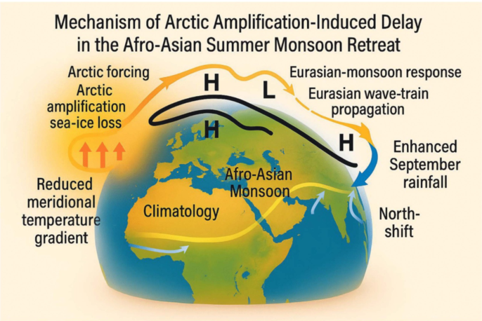 Zhang J.*, H. Chen, W. Ma, R. Riaz, S. Syed. I. Ullah, J. Shen. Arctic warming delays the Afro-Asian monsoon retreat amplifying autumn rainfall. Environ. Res. Lett., 2026,21,034006, DOI: 10.1088/1748-9326/ae3974