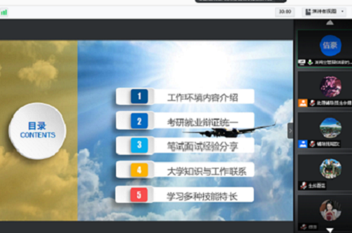 第一期“大气有成·一‘职’为你”就业经验云分享活动的顺利开展让同学们对气象行业及其相关工作和岗位有了进一步的了解和认识;随着2021年秋季招聘陆续展开,满足学生获取求职信息、熟悉招考流程等的需求,10月19晚,大气科学学院第二期“大气有成·一‘职’为你”就业经验云分享活动如期举行。