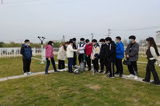 在六合区气象局工作人员的带领下,同学们首先进入气象科普展览区参观。在讲解员的详细介绍下,同学们参观了台站现存的测雨台、日晷等古代气象仪器,仿佛走进了气象观测的历史长河,进一步加深了对气象仪器“进化史”的兴趣和了解。随后,大家参观了气象局的气象观测场,了解到目前台站所有观测仪器均已实现了数据的自动观测、记录和存储,大大方便了日常气象数据观测工作。大家还就气象仪器作用、使用注意事项以及预报业务内容、台站岗位设置和要求等方面踊跃提问学习,工作人员逐一耐心作答。