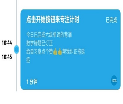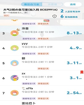 “云端自习室”依托手机软件开展。大家在班委的组织下每周一至周五晚上按时加入虚拟自习室,选择相应的待办事项,完成自己当日的学习目标。通过比拼专注时长,班级成员之间相互督促,解锁云端自习新模式。