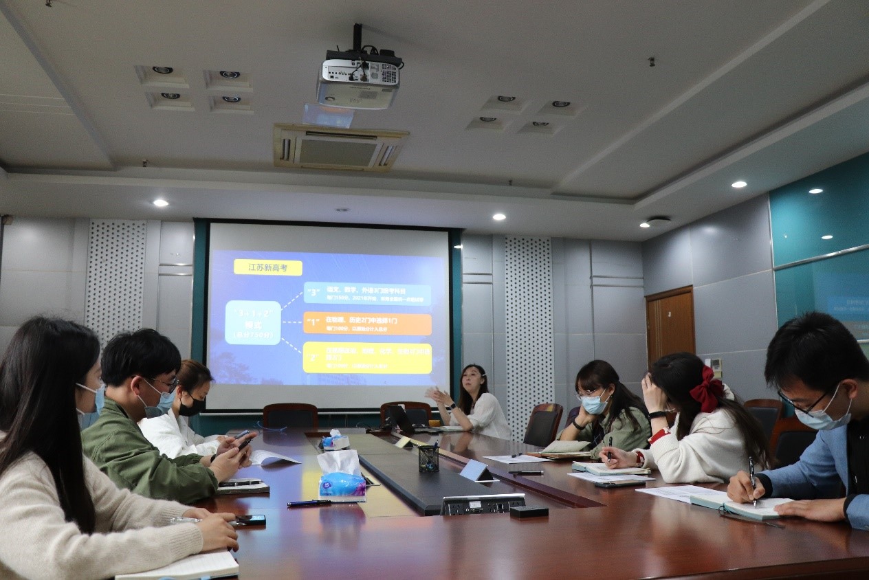 首先,张皓副书记分析了今年招生宣传工作的新形势,介绍了江苏新高考方案和政策,并围绕我校专业志愿组设置、学校招生宣传纲要等要点进行了解读,帮助全体辅导员对今年的招生宣传工作有了深入全面的认识。同时,张皓副书记强调,优质的生源对学校发展有意义重大,要求全体辅导员老师学懂、弄通、吃透江苏新高招政策和学校招生政策,以专业、严谨、细致的态度和全面、热情、周到的服务做好今年的招生宣传工作。