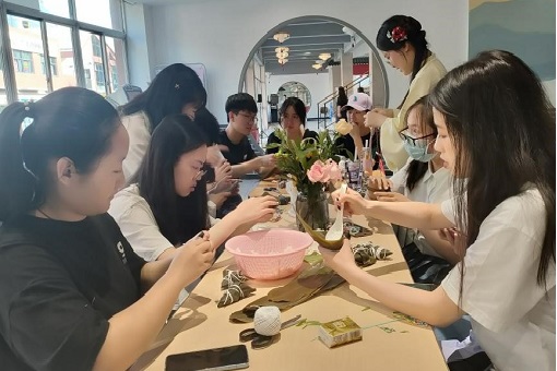 同学们学习包粽子