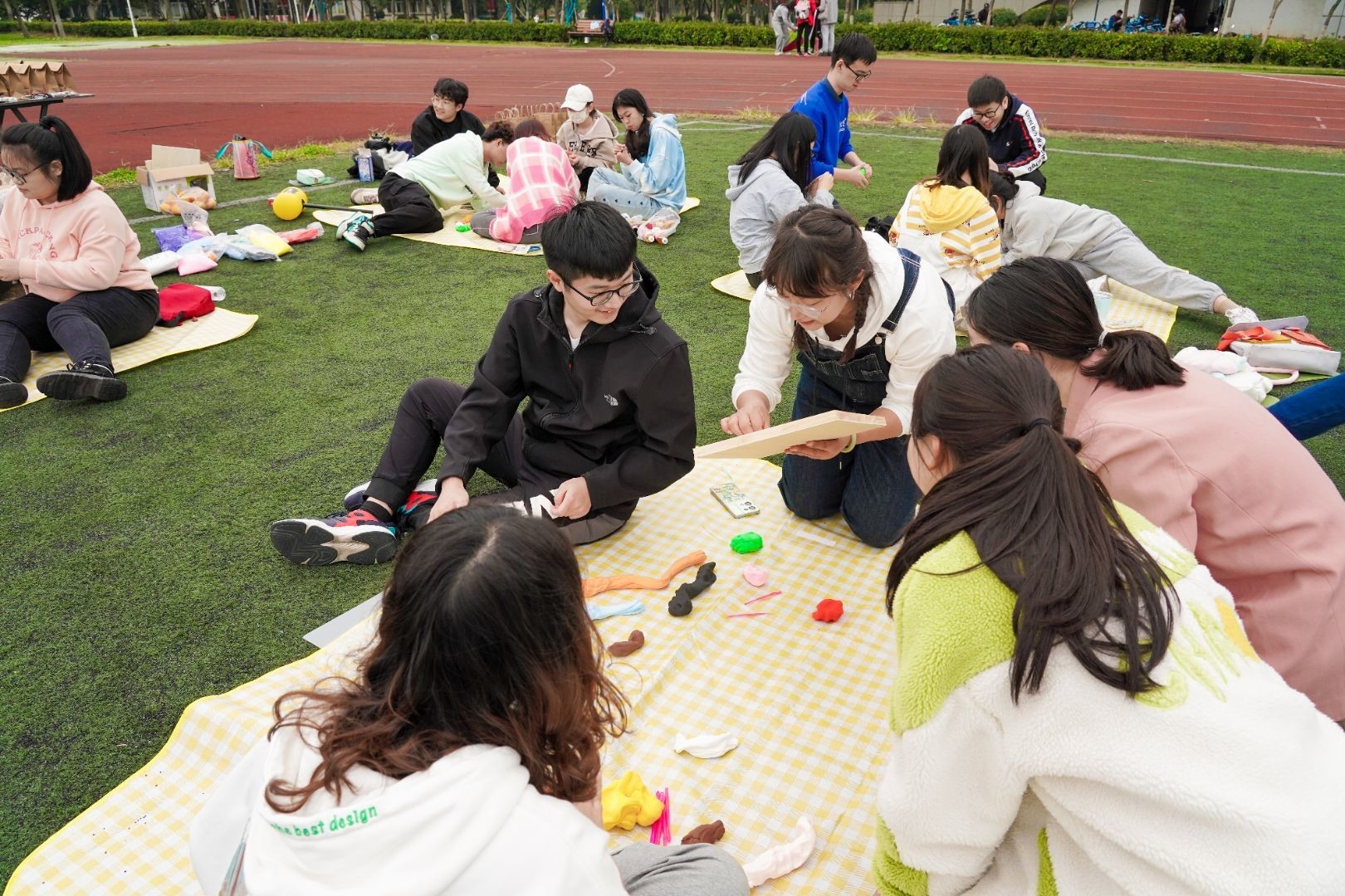 活动开始,主持人首先组织同学们进行了热身游戏“逛三园”,并进行真心话大冒险和自我介绍。在热身活动中,同学们互相认识了彼此,气氛也渐渐活跃了起来。在随后的“充气狼牙棒大赛”中,所有同学都融入活动,气氛被推向高潮。活动最后,同学们随机抽签分成六组,在辅导员刘伟老师指导下,学习使用粘土画描绘秋天的美景。小组成员相互配合,深入沟通,顺利完成了一幅幅富有创意的粘土作品,在各组代表的展示中,活动圆满画上了句号。