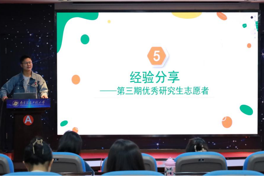 第三期“大气·研途”活动优秀志愿者唐国娃、李琳菲、祁万鹏同学随后依次分享了自己的活动经验和心得,表示志愿者要主动关注大三同学们的实际需求,同时结合志愿者的个人特色有效帮扶。