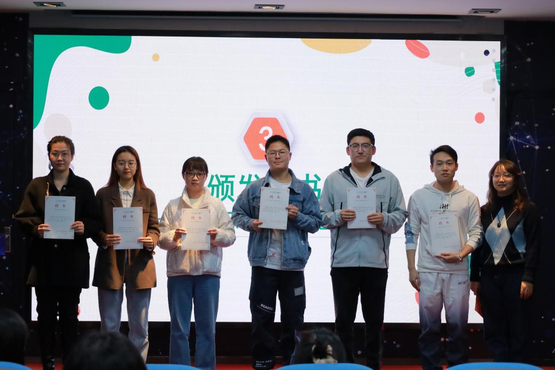王晶老师首先向同学们详细介绍了“大气·研途”系列活动。她指出“大气·研途”党团共建平台聚焦思想引领、专业学习、素质提升和未来规划四个板块,不断推动研究生与本科生之间的交流。同时,她还鼓励同学们明确目标、合理规划、脚踏实地,坚持不懈地朝着自己的目标努力。随后,刘伟老师为第四期研究生志愿者颁发聘书,并为第三期研究生志愿者优秀队长颁发荣誉证书。