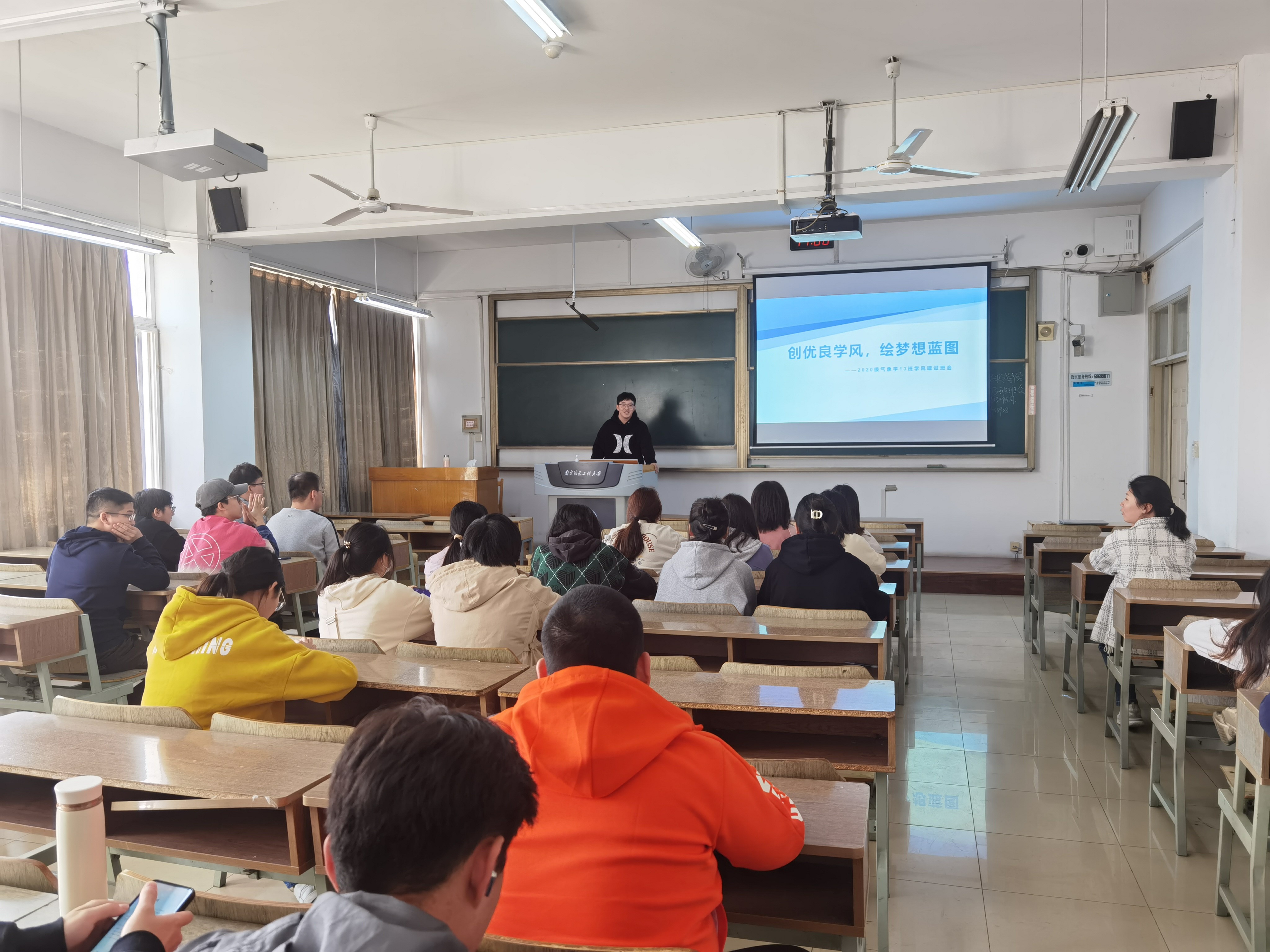为帮助同学们总结上学期的学习成果,以更好的姿态面对新学期的学业生活,帮助同学们了解更多考研学习时的经验以及未来努力方向,3月15日下午,大气科学学院2020级13班在文德S303开展学风建设主题班会活动。本次班会由班长郑帅主持,邀请研究生学姐薛茹帆和辅导员刘伟老师参加。