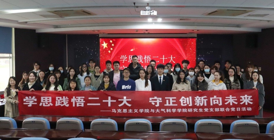 为推动研究生进一步开展党史学习与气象科技学习,继续用党的历史经验和实践创造助力研究生启迪智慧、砥砺品格、鼓舞斗志,满怀信心奋进新征程、建功新时代,以实际行动学习两会精神,3月27日,大气科学学院硕士研究生第四党支部与马克思主义学院党支部联合开展了以“学思践悟二十大,守正创新向未来”主题党日活动。马克思主义学院党委书记葛昕明,大气科学学院党委书记周淑琴,马克思主义学院党委副书记、副院长方群及两院研究生辅导员参加活动。
