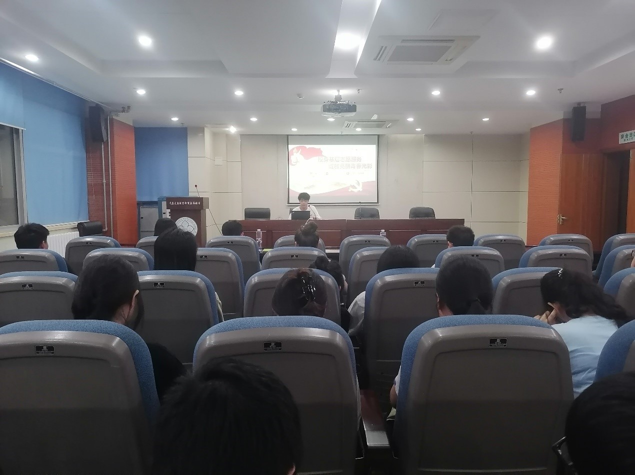 为深入开展学习贯彻习近平新时代中国特色社会主义思想主题教育,鼓励同学们积极投身国家基层建设事业,帮助同学们进一步了解西部计划和志愿服务乡村振兴计划,做好个人职业生涯规划,我院于6月2日在气象楼423会议室组织开展了“服务基层,绽放青春”信仰公开课之梦想公开课。本次会议特邀校团委黄欢老师主讲,第23届研究生支教团广西团团长陆秋鸣分享,院分团委书记高慧颖主持。