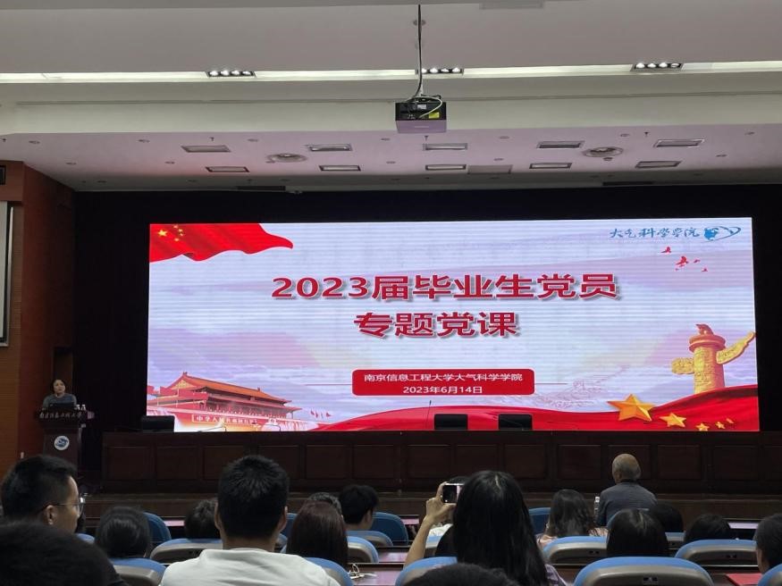 为深入学习贯彻党的二十大报告精神,勉励毕业生党员筑牢理想信念,胸怀家国天下,大气科学学院于6月14日晚在气象楼一楼报告厅开展了毕业生党员主题教育活动。我校大气科学学科二级教授、博士生导师王振会教授作为本校“薪火相传”关工委宣讲团成员受邀参会,为我院本硕博毕业生党员作了题为“我在南信大”的专题党课。活动由学院党委书记周淑琴主持。