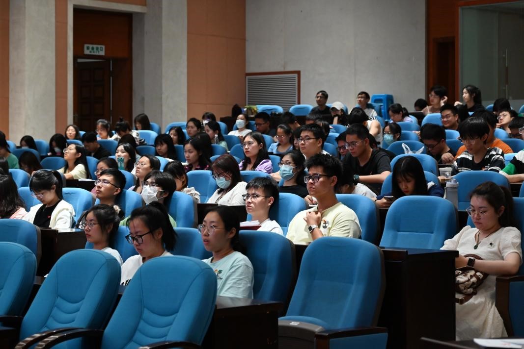 王振会教授用朴实而幽默的语言,通过一个个生动有趣的故事,从“我的大学生活”“我曾备考研究生”“我与母校共奋进”“我看疫情”四个方面为大家讲述了他与南信大的故事。作为一名气象教育工作者,王振会教授通过自己丰富的人生经历勉励同学们要爱国、爱党、爱校,更要将满腔的爱国热情转化奋斗的力量,运用自己所学建设祖国。讲座最后,王振会教授希望在场的全体毕业生党员始终以习近平新时代中国特色社会主义思想为指导,将个人理想与国家理想相结合,把个体的“小我”融入到祖国和时代的“大我”,报效祖国、服务人民,以永不满足、永不懈怠的精神,为建设新时代气象强国作出贡献。