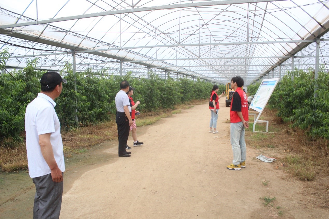 团队与新沂市露天水蜜桃种植经理范红雨和大棚种植基地经理王开志等就气象灾害对水蜜桃种植的影响展开科普交流并提出建议。其中包括:加强气象预警关注力度、合理安排果实采摘时间、进行科学化修建排水渠、根据气候变化合理调控大棚内温湿度、大棚的搭建方向应尽量与盛行风向平行并种植防风林。通过队员们有针对性的气象防灾减灾科普,企业经理们对气象防灾减灾在水蜜桃种植中的作用有了新的认识。