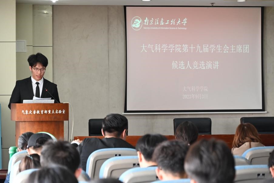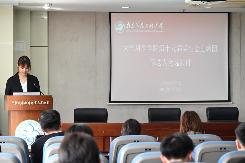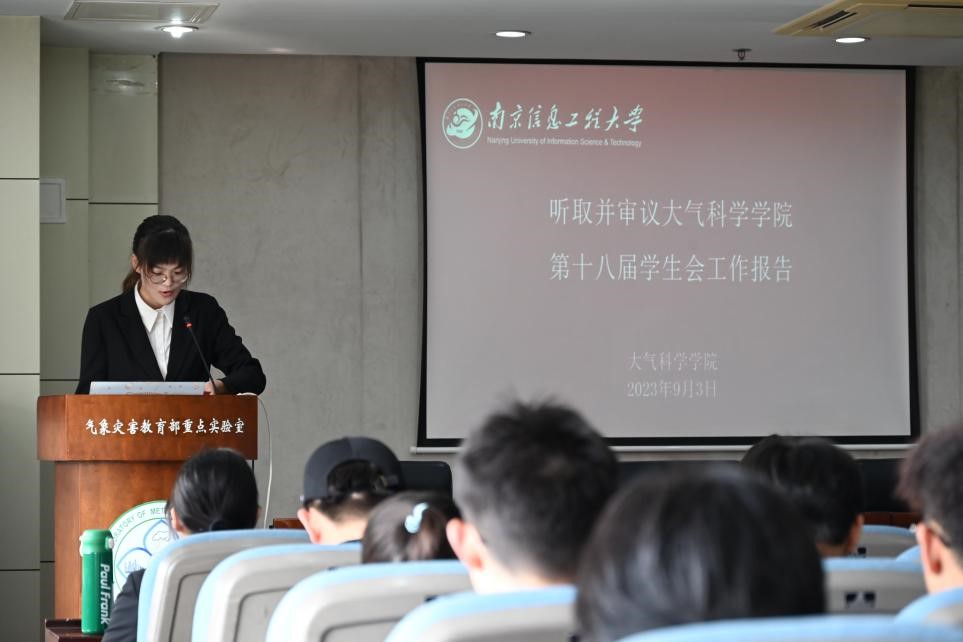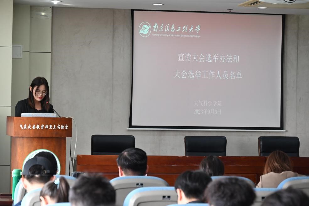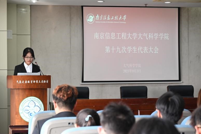 9月3日上午,大气院在气象楼423召开第十九次学生代表大会,学院团委书记高慧颖老师以及65名学生代表出席本次大会,会议由院分团委副书记于楷潞主持。