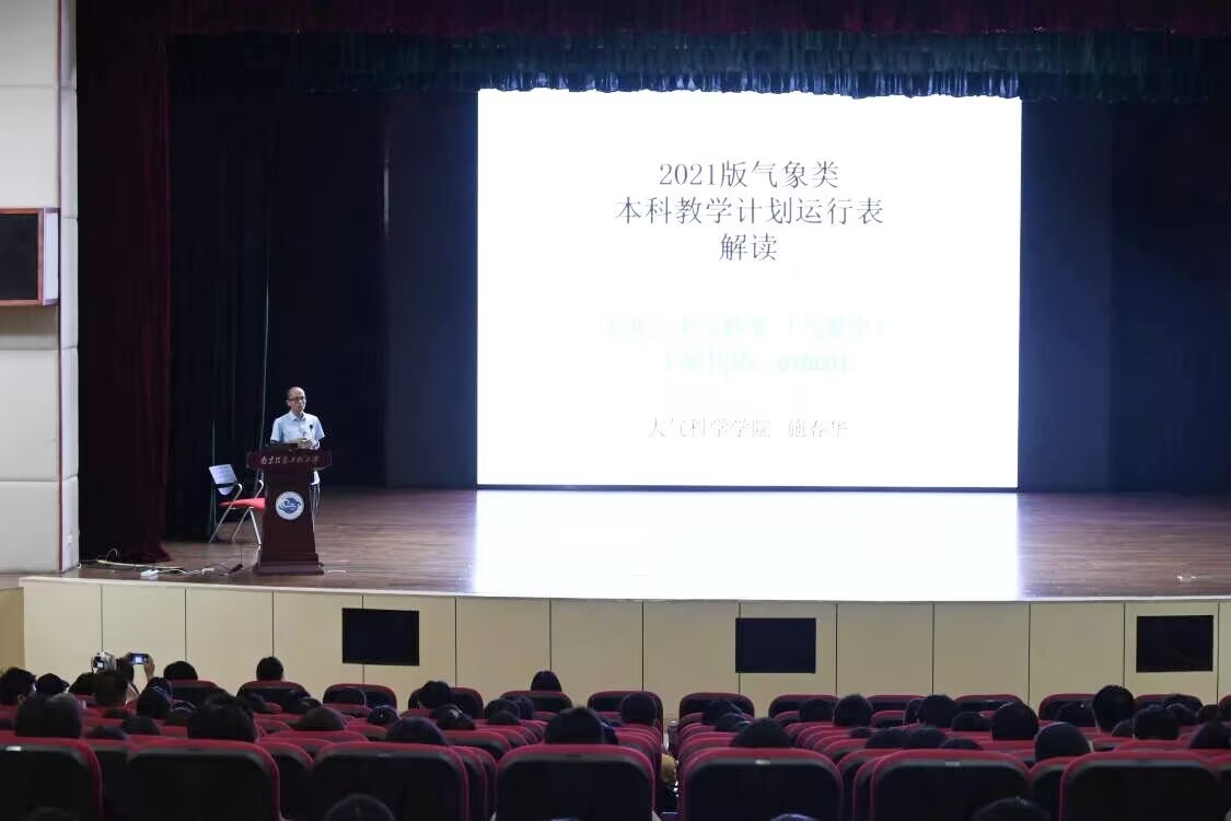 会上,施春华教授首先进行2021级气象学模块教学大纲的解读,明确指出同学们课程学习所需学分的具体要求,帮助同学们提高专业认识并合理规划学习生活。随后,施教授结合自身经验,围绕品质、学习、理想、思考、社交五个方面,向同学们介绍大学期间必须培养的素质和能力,并表达了对同学们成为内心强大的新一代栋梁的期望。