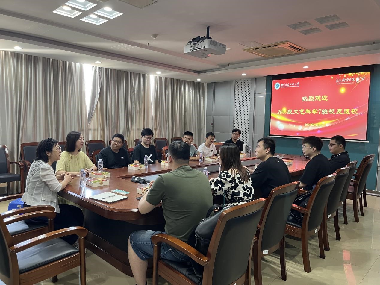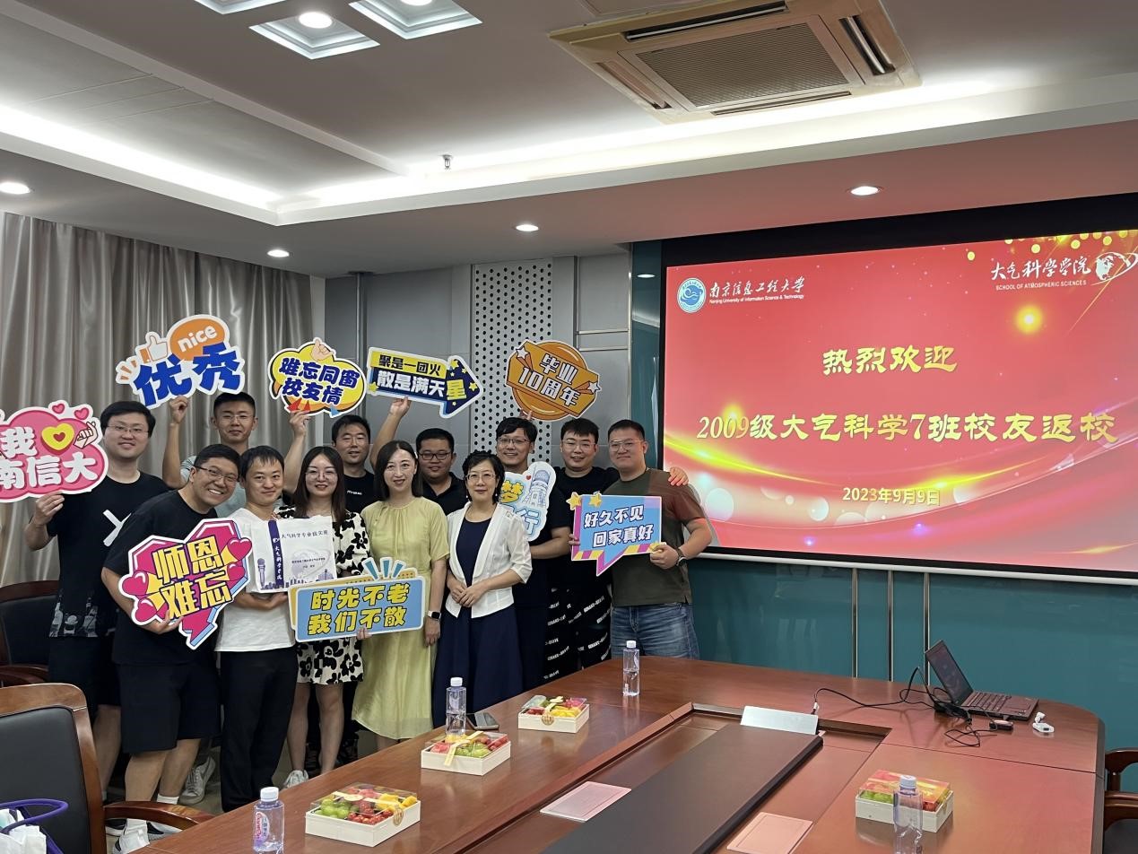 饮其流者怀其源,学其成时念吾师。9月9日,大气院2013届大气科学7班校友毕业十周年重返母校,16位大气学子跨越山海,在这个秋高气爽又充满生机的季节里相聚信大,共绘一场意义非凡的毕业聚会,开启专属于他们的“独家记忆”。校友办公室主任程艳丽,时任2009级大气科学专业辅导员、现大气院党委副书记、副院长张皓在气象楼713会议室与校友们亲切座谈。