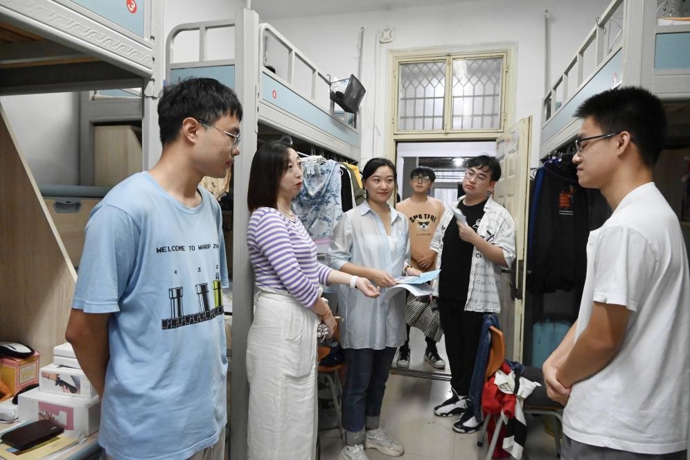 张皓副书记以及辅导员老师深入2021级大类分流学生宿舍,了解同学们对新学院的适应情况,对大家提出的问题进行耐心细致的解答,并且鼓励大家积极参加学院各类特色活动,积累经验、增长才干,为学院的建设贡献青春力量。辅导员老师们还逐一向同学们发放学院专门印制的防诈骗宣传单,提醒同学们时刻保持警惕,不随意泄露个人信息,不让诈骗分子有机可乘。