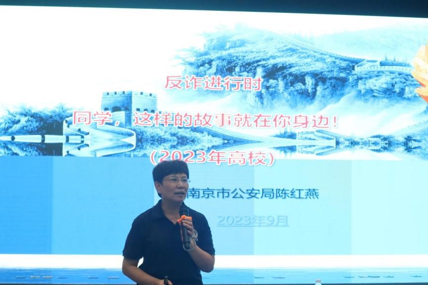 本次讲座特邀南京市公安局内保支队首席反诈专家、南京市公安局反电信网络诈骗中心主任陈红燕警官担任主讲,大气院党委副书记副院长张皓、盘城派出所孙跃警官、校保卫处徐蒙田老师出席讲座,2023级全体研究生新生参加活动。本次专题讲座由学院团委书记、研究生辅导员高慧颖老师主持。