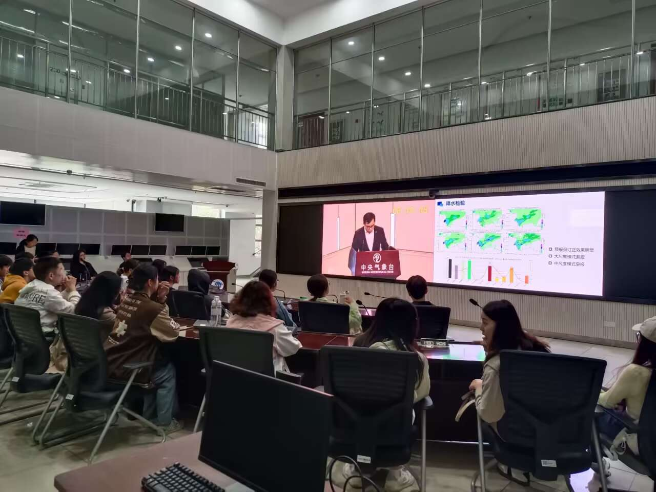 为帮助2021级学生提高气象业务认识,巩固专业知识,将自身专业与日常生产生活相联系,深化培养同学们的家国情怀、气象情怀,助力学院新学期的学风建设工作,10月中下旬,大气院组织2021级本科生以班级为单位前往学校气象台会商大厅进行天气会商观摩活动。