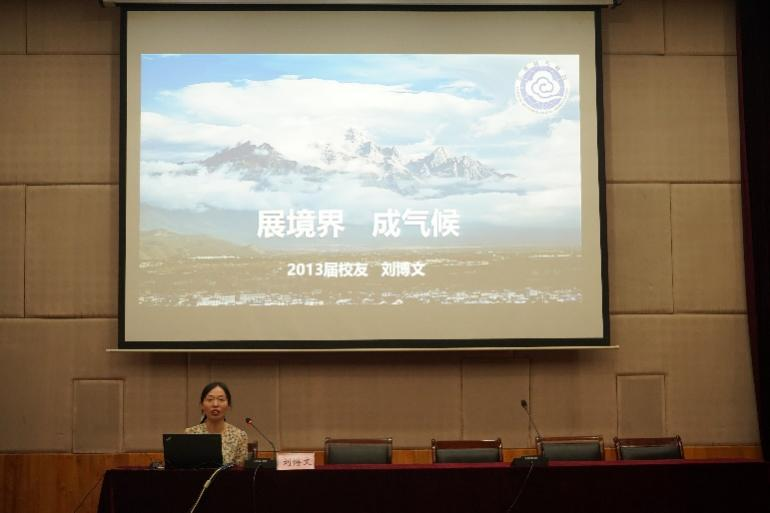 主讲嘉宾刘博文自2013年参加工作以来,一直从事中小河流、山洪、地质灾害气象风险预报预警业务,她以“展境界,成气候”为主题,向同学们介绍了云南省气象台基本情况、云南天气气候基本特征、云南天气预报服务业务等内容。跟随着她的分享,同学们感受到了信大人“艰苦朴素、勤奋好学、追求真理、自强不息”的精神风貌,深刻领悟到正是一代又一代气象人的默默付出与奉献,凝聚成了“准确、及时、创新、奉献”的气象精神,才有了国家气象事业的蓬勃发展。