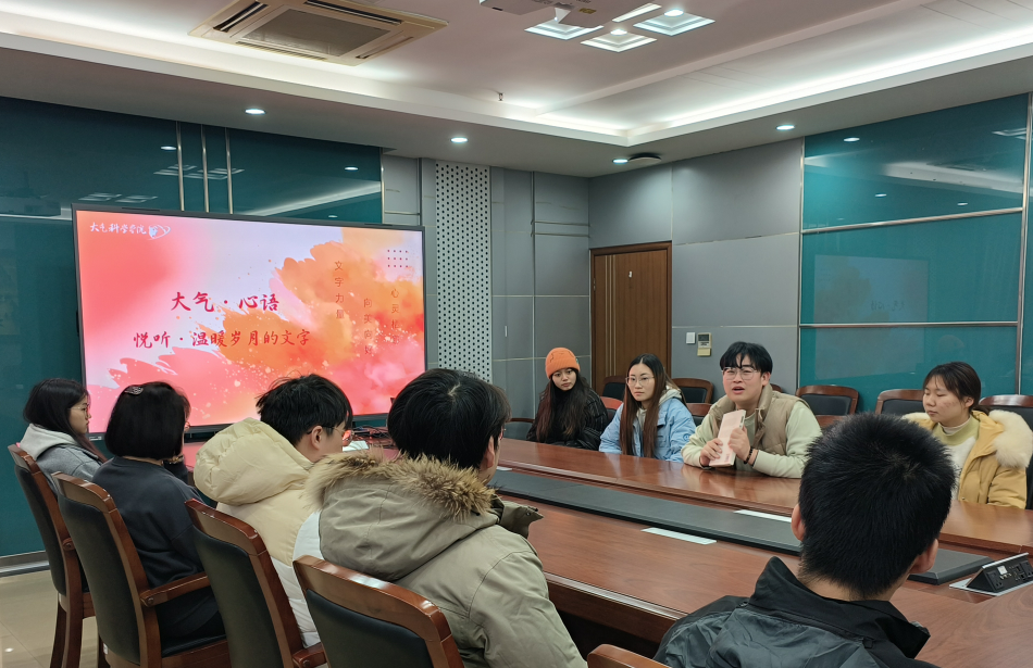 为增进师生交流,充分发挥教师育人功效,大气科学学院于2023年12月19日在气象楼713开展“大气·心语——悦听·温暖岁月的文字”主题活动,活动邀请大气科学学院辅导员邹东明老师为主讲嘉宾,全院本科生、研究生学生代表参与此次活动。