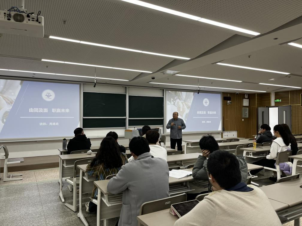 为进一步提升2024届毕业生的求职能力,帮助学生了解近期就业现状以及进一步加强学生就业基础技能和综合素质,3月19日下午,我院在明德楼N515召开“大气·有成——历练凝智,扬帆启航”求职技能提升训练营,活动邀请领航教育职业规划总监周建政主讲,学办主任赵魏丹老师主持,毕业班辅导员以及毕业生参加。