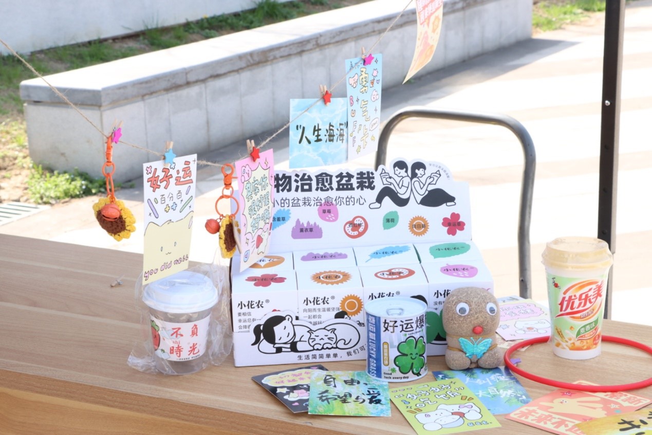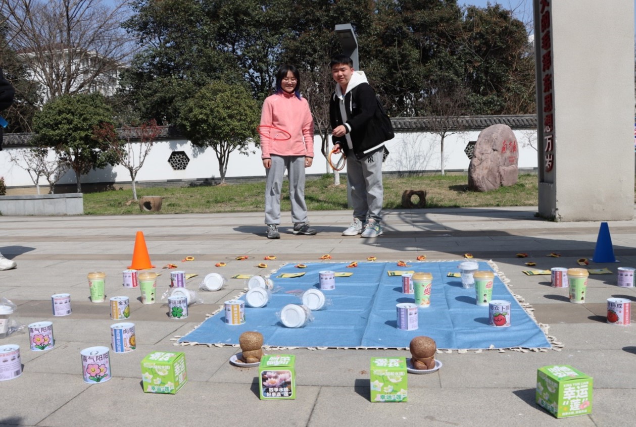 套圈的活动气氛热烈,欢笑声、掌声此起彼伏。该活动不仅具有趣味性,更兼具运动性,释放了同学们的压力,取而代之的是收获的喜悦。套圈可得的物品包括寓意好事发生的西红柿种植罐头、好运爆棚的幸运草种植罐头,向阳而生的向日葵种植罐头等,希望同学们可以从关注植物的生长到关注自己的心理健康成长状态,感受生命的珍贵与顽强。活动最后,同学们选取精美明信片写下自己对未来的期许、对他人的鼓舞,传递祝福和希望。