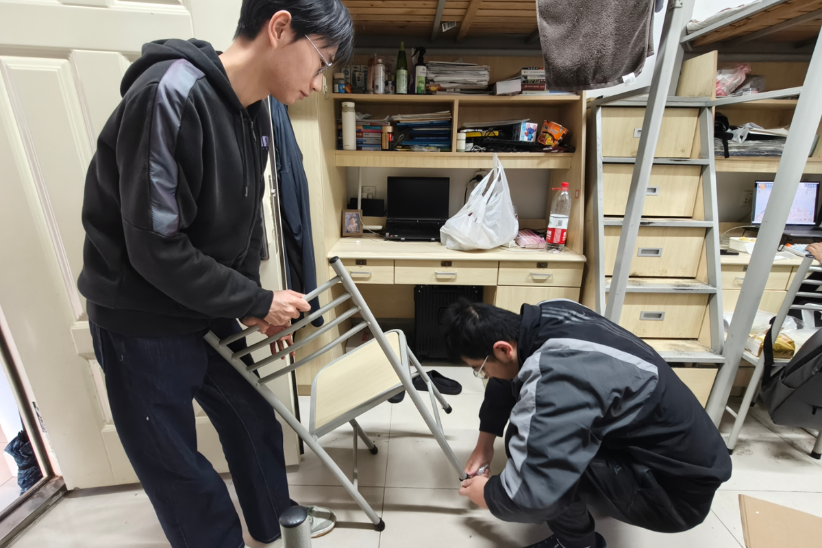 随着考研进入最后冲刺阶段,大四学子们正争分夺秒进行复习。然而,宿舍区内偶尔产生的桌椅移动噪音,却成为干扰他们专注备考的“小烦恼”。为切实解决学生们的困扰,大气院本科生第四党支部迅速响应、主动作为,组织开展了“党员先锋行,静音助考研”宿舍消音专项行动,通过为相关寝室椅子安装静音脚垫,切实为备考学子营造安静、舒心的生活环境。